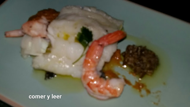BACALAO CON LANGOSTINOS Y TAPENADE DE ACEITUNAS VERDES